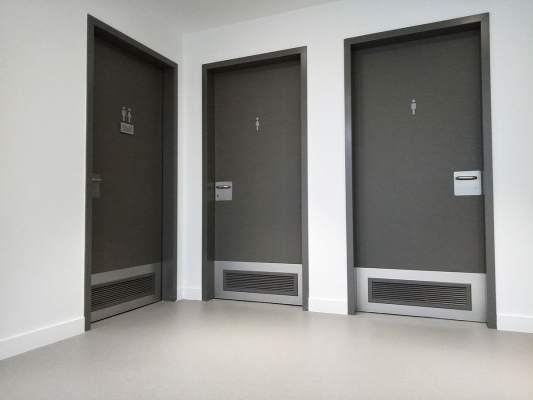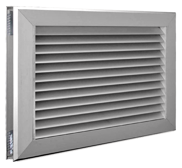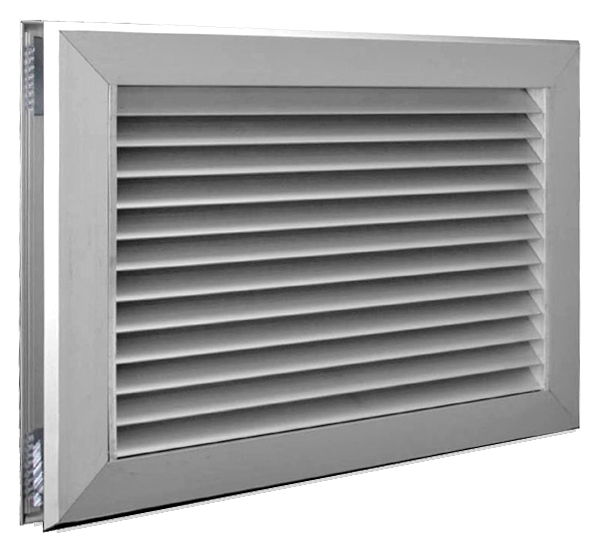 Στόμιο θύρας κατασκευασμένο από ανοδιωμένο αλουμίνιο για την εξασφάλιση της διέλευσης του αέρα από χώρο σε χώρο, χωρίς να είναι δυνατή η ορατότητα μεταξύ χώρων. Τα πτερύγια του έχουν σχήμα Λ και είναι παράλληλα στην πρώτη αναφερόμενη διάσταση. Υπάρχει φλάντζα και στις δύο πλευρές του στομίου. Είναι δυνατή η ηλεκτροστατική βαφή σε χρώμα RAL.