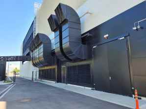 Στόμιο βροχής-νωπού από γαλβανισμένο χαλυβδοέλασμα με σταθερά πτερύγια κλίσης 45o και πλέγμα γαλβανισμένο (6X6mm ή 12X12mm) στο πίσω μέρος που εμποδίζει την είσοδο ξένων σωμάτων. Κατάλληλο για τη λήψη ή την απόρριψη αέρος από ή σε εξωτερικούς χώρους. Τα πτερύγια είναι παράλληλα στην πρώτη αναφερόμενη διάσταση και με βήμα 82mm, ώστε να είναι μεγαλύτερη η ελεύθερη επιφάνεια του στομίου. Είναι δυνατή η ηλεκτροστατική βαφή σε χρώμα RAL. Κατασκευάζονται σε συγκεκριμένα ύψη.