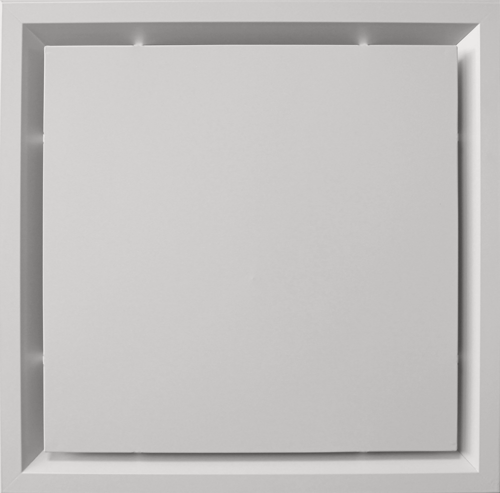 Square, 4-way, ceiling archtectural diffuser. For supply or return air applications. Made from steel and aluminium painted electrostatically in RAL color. With fixed central square piece.