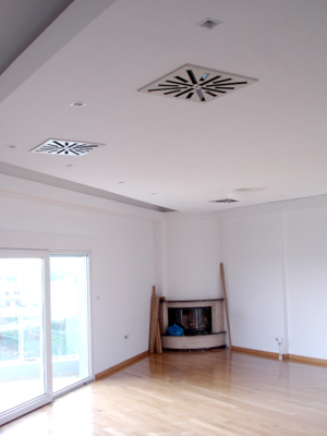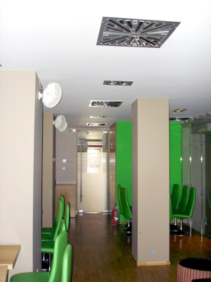 - GR-AA-A-D: With square front plate (outside dimensions of front plate 595X595mm), air outlets with square circumference and aluminium made, multiple leaf, air volume control damper with simultaneously opposite rotated blades. Active size 300 or 400 or 500.