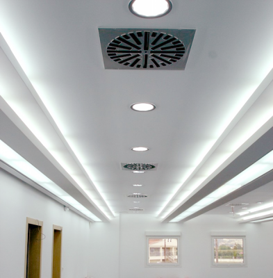 - GR-AR-A: With square front plate (outside dimensions of front plate 595X595mm) and air outlets with circular circumference. Active size 300 or 400 or 500.