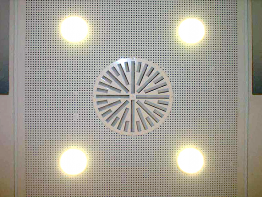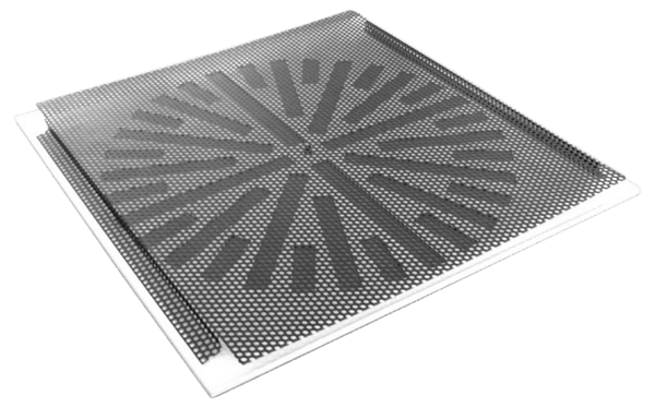 In the size 600 the outside dimension of the diffuser is 595X595mm end the active size 550. Upon request the outside dimension could be 625X625mm or 640X640mm with the same active size.