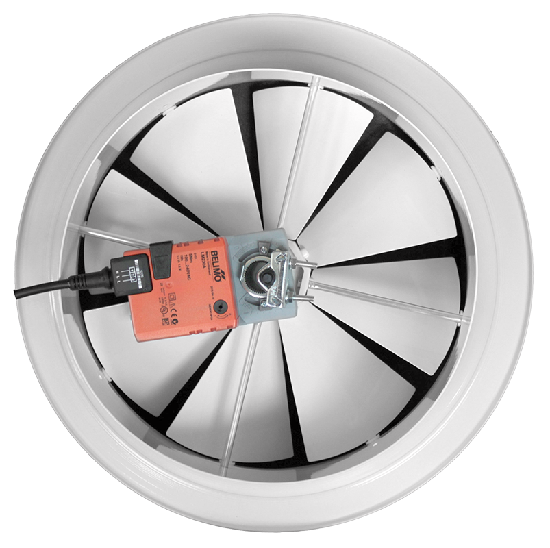 - MLD-DW-ANALOGUE 24V: With double round frame and electric actuator analogue 24V for the adjustment of the blades angle (not for size 200).