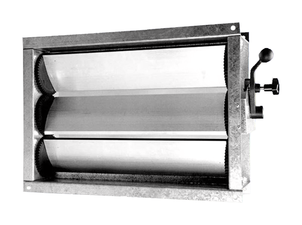 Multiple leaf air volume control damper for installation in square or rectangular air ducts. The frame is made by galvanized sheet steel. With simultaneously, opposite rotated, aerodynamically shaped blades made by aluminium. Every blade is rotated by two plastic gears. The plastic gears are inside the frame to avoid pollution. The blades in the length they have seals in rubber for better air-tightness. The blades angle is manually regulated. Air leakage when closed: CLASS 2 according to the standard ΕΝ 1751:1998. The connection of two dampers DA (in same or opposite rotation) is possible by using connection elements. The blades are parallel to the first mentioned dimension.