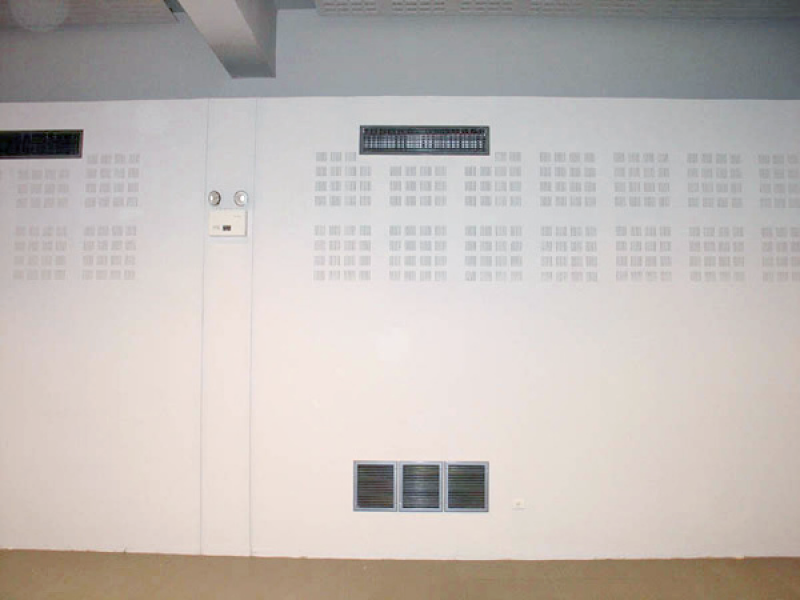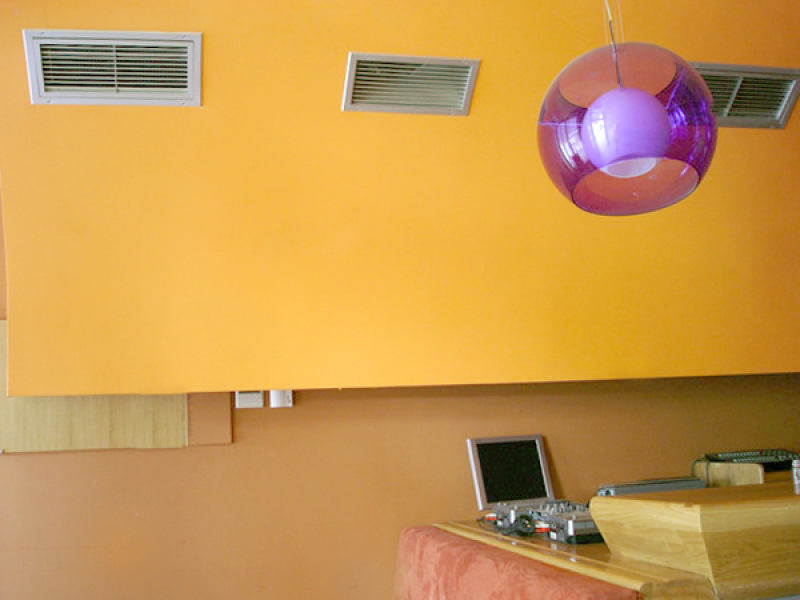 Return air grille for wall or ceiling installation made by anodized aluminium. With one row of fixed blades in angle 45o. The blades are parallel to the first mentioned dimension. Electrostatic paint in RAL color is possible.