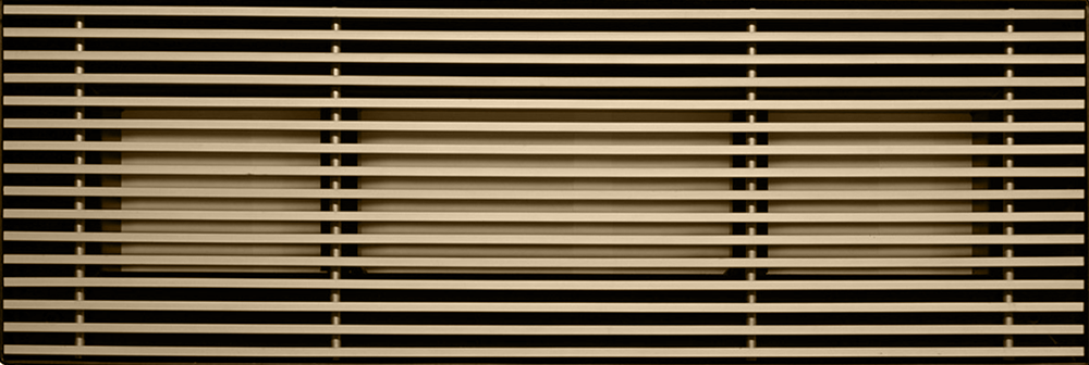 Heavy type linear grille for false floor installation in rooms like data centers etc. For supply or extract air. With steel frame painted black RAL 9005. The blades are made by anodized aluminium, they are fixed and the air jet is vertical to the grille face. Outside dimensions 599X599mm.
