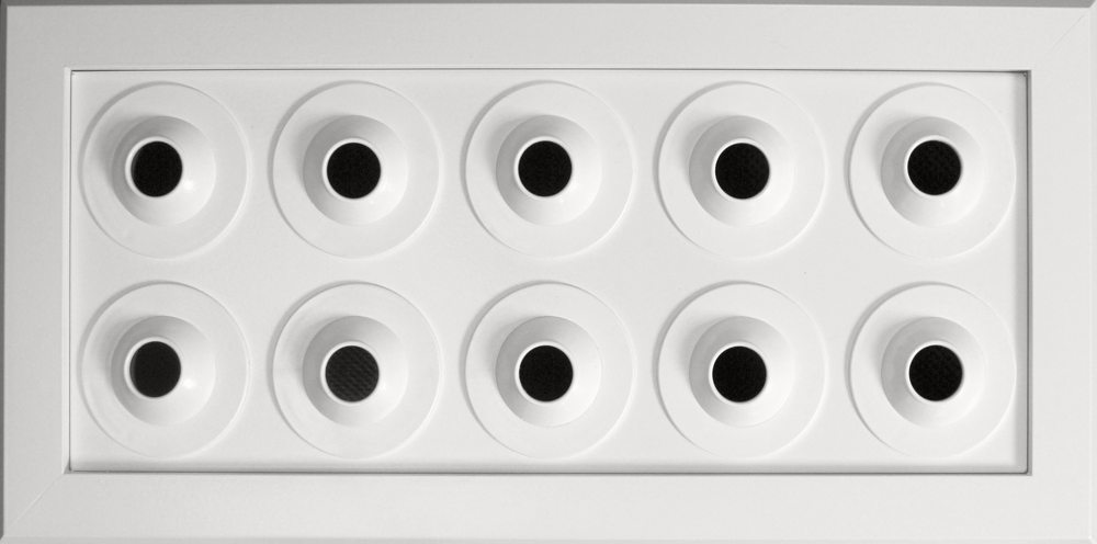 - AMB-AP-Φ22: Set of many jet nozzles in rectangular frame made by aluminium, anodized or painted electrostatically in RAL color. Only the adjustable heads of the plastic jet nozzles (they are produced in certain colors) are visible.