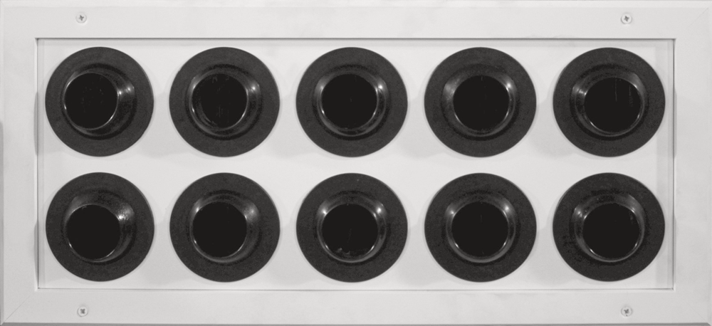 - AMB-AP-Φ42: Set of many jet nozzles in rectangular frame made by aluminium, anodized or painted electrostatically in RAL color. Only the adjustable heads of the plastic jet nozzles (they are produced in certain colors) are visible.